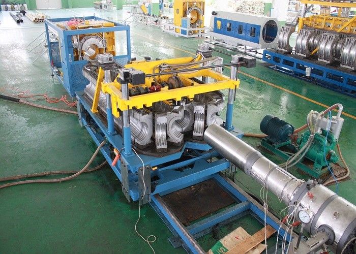 Corrugator is goedgekeurde horizontale structuur met kettingstype transmissie, die met gedwongen wordt uitgerust - luchtkoelingssysteem. Het verhoogt zeer de productiesnelheid. Vorm het bewegen zich keurt synchroon hoger en lager mechanisch aandrijvingssysteem en geavanceerd zelfsmeringssysteem goed. Het verzekert bewegende nauwkeurigheid en pijpkwaliteitsstabiliteit.