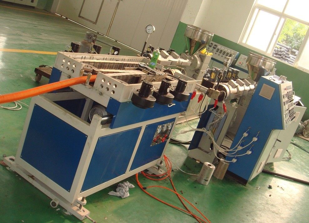 Extruder: Hoge snelheid en efficiency enige gegroefte schroefextruder, vat, dat met de lagere lawaaiventilator, de hoge snelheid en het harde toestelreductiemiddel wordt uitgerust. Het kan de binnen en buitenlagen maken verschillende materiaal en waarborghoog rendementuitdrijving veroorzaken.