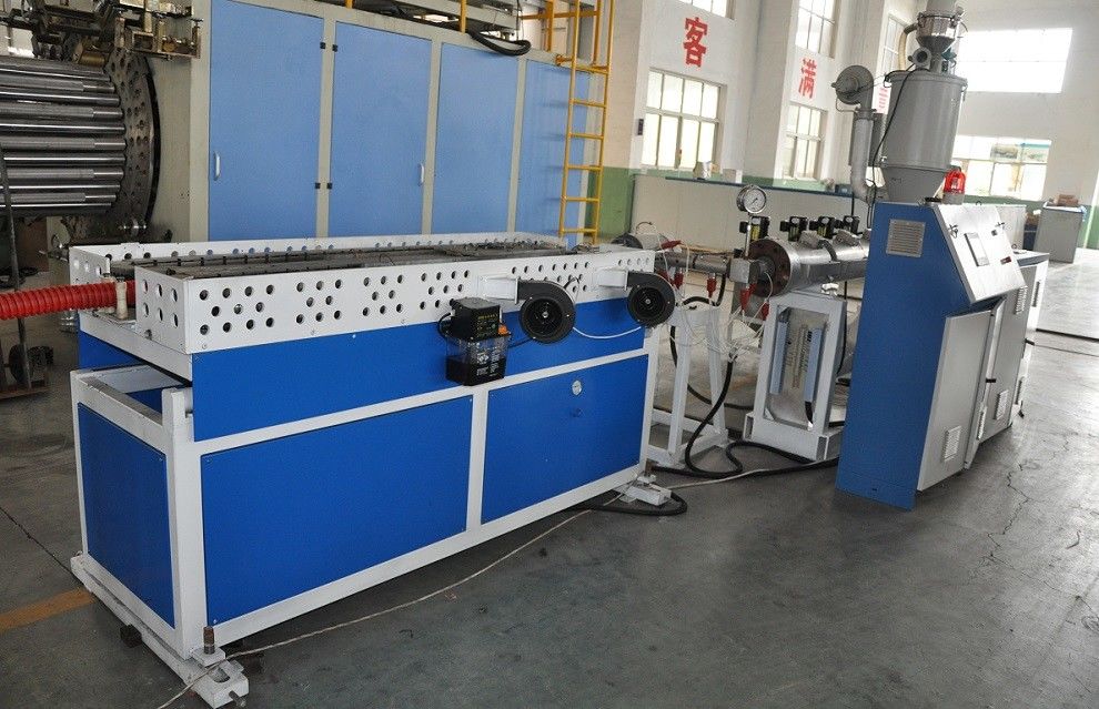 Pvc-lijn van de de pijpuitdrijving van de staaldraad omvat de versterkte hoofdzakelijk extruder, staaldraad die machine, water bespuitende tank, afstand-van machine en spoel etc. rolt.