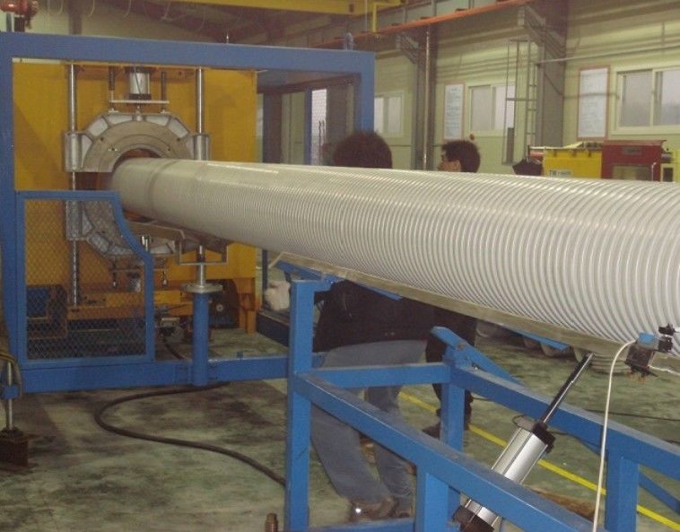 De enige/dubbele muur golfdiepijpmachine door ons bedrijf wordt ontwikkeld keurt toestellen goed om modules en malplaatjes in werking te stellen om water het doorgeven het koelen en luchtkoeling van de producten te realiseren, die hoge snelheid het vormen, zelfs plooiing, vlotte binnen en buitenpijpmuur verzekert. Deze golfpijpen worden vooral gebruikt in de pijp van de dradenbuis. Het is hoofdzakelijk voor de productie van grondstoffen aan kleine de diameter enige muur golfpijp van PVC.PP.PE. De matrijs door te corresponderen die homogeen vormen enig-wallcorrugated blaasbalgenproducten. Het inpassen van pijp voor draad en kabel, die machinedrains, stofzuigers, ventilatiepijp, prestressed concrete speciale buizen wassen.