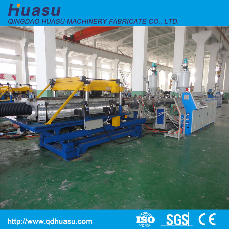 De lijn van de de pijpuitdrijving van PE/HDPE/PVC double-wall golf keurt uitdrijving het vormen proces goed, dat de kenmerken van betrouwbaar kwaliteit en hoog rendement heeft. Vergeleken met andere plastic structuren van de pijpmuur, hebben double-wall golfpijpen het uitstekende ontwerp van de muurstructuur en lichtgewicht, dat productiekosten vermindert en marktconcurrentievermogen verbetert. De pijpleiding is wijd gebruikt op diverse gebieden zoals concrete pijpleidingen en ijzerpijpleidingen toe te schrijven aan zijn eigenschappen zoals geschikte verbinding, geschikte installatie van toebehoren, en betrouwbare kwaliteit.