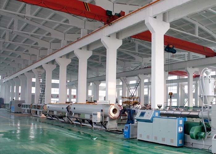 De extruder is SDHS-reekshoog rendement, de hoge extruder van de output enige schroef. Het speciale de structuurontwerp van het schroefvat verzekert ideale smeltingsuniformiteit bij lagere oplossingstemperaturen. Ontworpen voor pijpuitdrijving met grote diameter, is de spiraalvormige vorm van de distributiestructuur uitgerust met een de pijp intern koelsysteem van de in-vormzuiging. Gecombineerd met speciaal laag-verzak materiaal, kan het ultra-dik-ommuurde, met grote diameter produceren pijpen. Het hydraulische openen en sluitende vacuümtank in twee stadia, geautomatiseerde gecentraliseerde controle en coördinatie van veelvoudige kruippakjetractoren, chipless snijder en alle eenheden, een hoge graad van automatisering. De facultatieve tractor van de draadkabel kan de aanvankelijke verrichting van het groot-kaliber maken